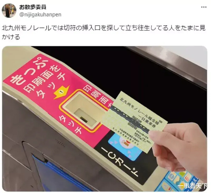 「我曾看见有东说念主搭北九囿单轨电车,因为找不到纸票插进口,导致卡在闸机前。」