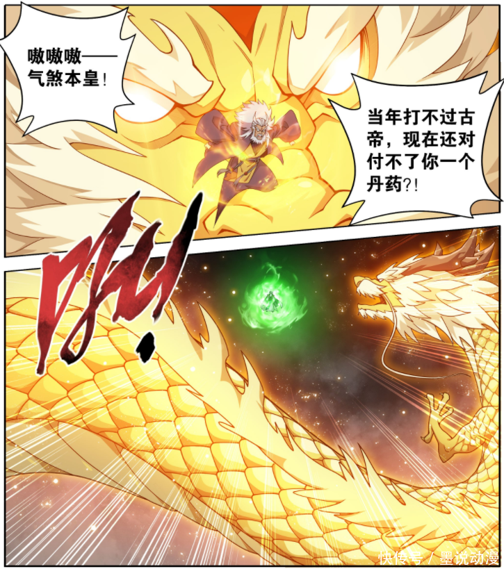 虽说烛坤三战三胜,但也有被压制的期间。靠近帝品雏丹,烛坤哪怕是是四东说念主之中最强,也赢不了帝品雏丹。就像漫画中所说,数千年前,烛坤打不赢陀舍古帝,数千年后还打不外帝品雏丹。不外烛坤也莫得被帝品雏丹打伤,仅仅被压制。