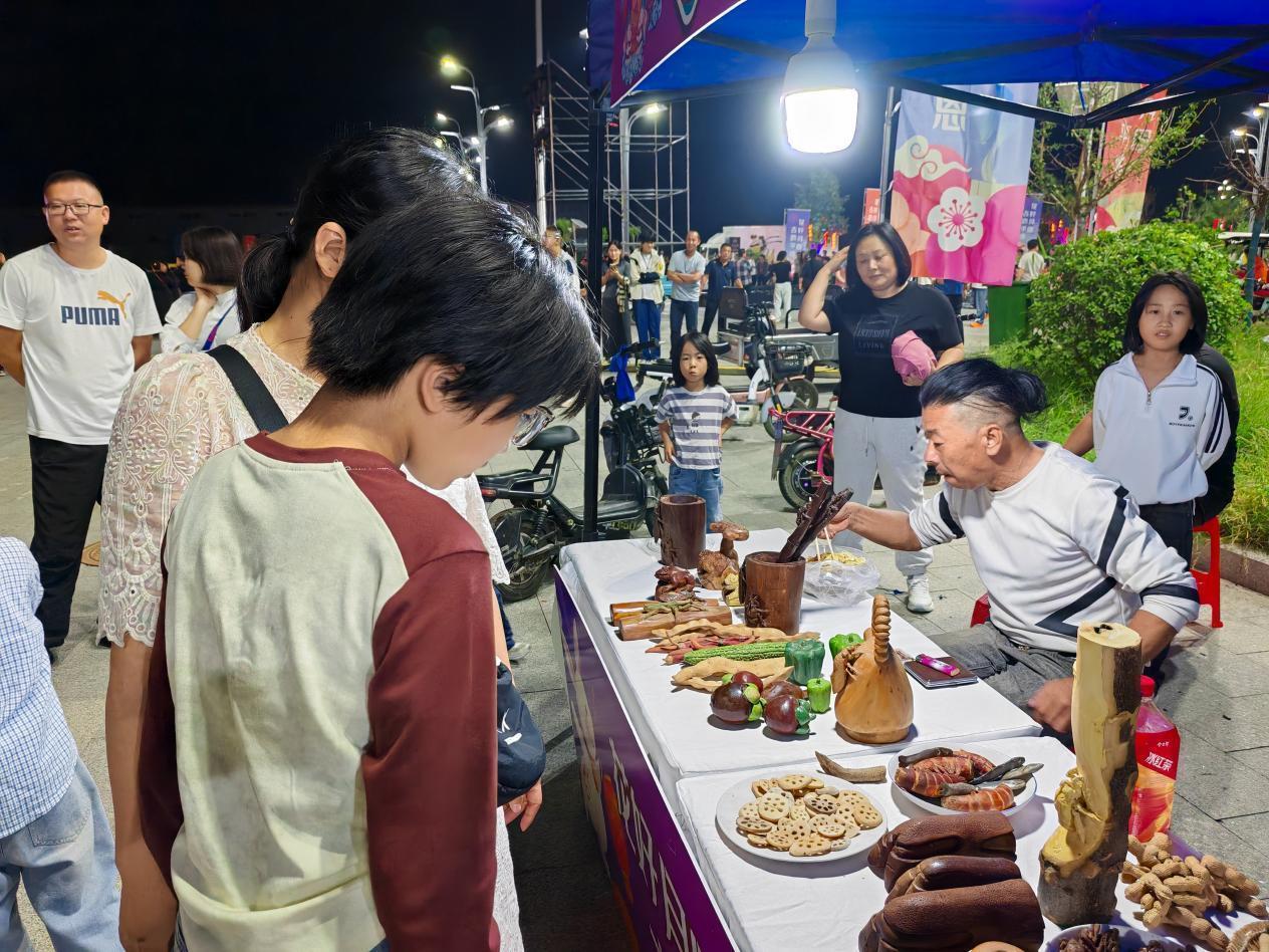 邱县在鲲鹏国外会展中心广场举办优选市集,非遗“根雕”摊位前引诱了繁密旅客。李文娟摄