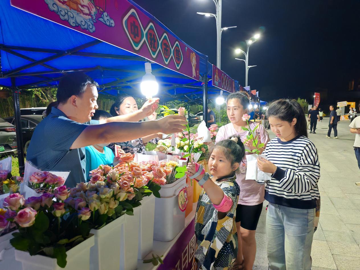 邱县在鲲鹏国外会展中心广场举办优选市集,旅客在玫瑰切花摊位前驻足购买。李文娟摄