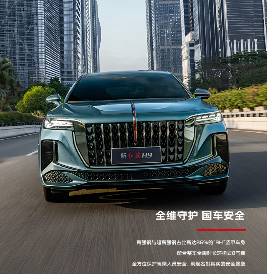 动作一款C+级豪华轿车,新红旗H9在各式主被迫安全建树上也进阶空前水准。