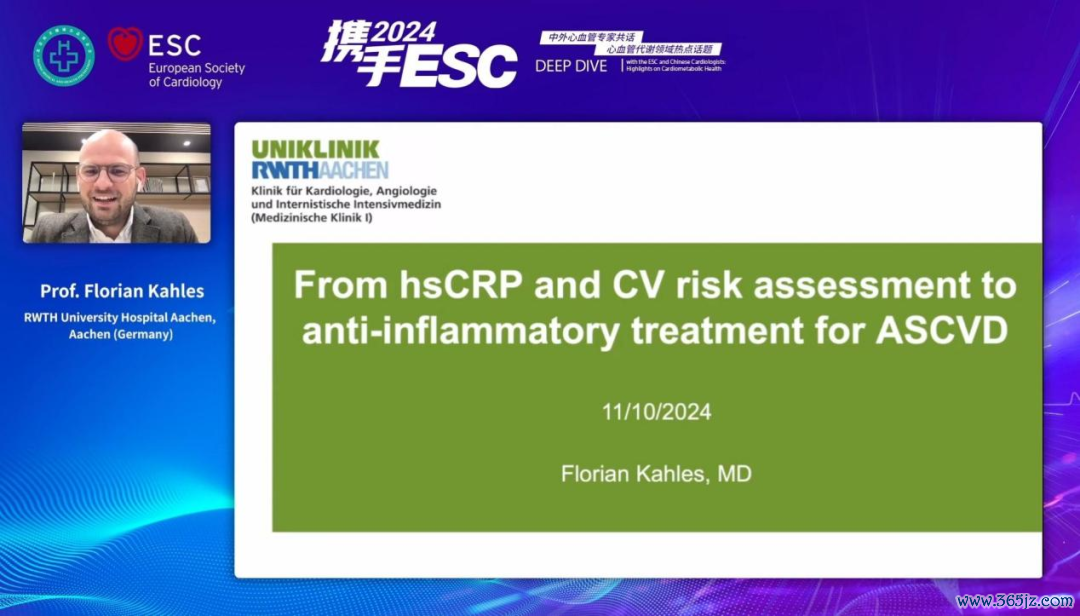 现在合计,动脉粥样硬化(AS)是一种慢性炎性疾病,炎症相接了其发生和发展的全程。2017年公布的CANTOS连络 [4] 初度说明了单纯抗炎诊治而非降脂诊治能权贵镌汰冠心病患者的主要不良心血行状件(MACE)发生风险,这使AS的“炎症假说”高潮到“炎症表面”。连年来,跟着COLCOT[5]和LoDoCo2[6]连络后果的公布,AS的抗炎诊治取得了打破性进展,使炎症反应成为搅扰AS的新靶点。若何评估ASCVD患者的炎症风险及接管有用的抗炎靶点?今后抗炎诊治的发展趋势?2024年10月11日“联袂2024 ESC——中外心血管人人共话心血管代谢界限热门话题”线上会议特邀复旦大学附属中山病院钱菊英教会和德国亚琛大学附属病院Florian Kahles教会,两位心血管人人就“ASCVD与抗炎诊治”关联话题作了素养共享,并与线上不雅众进行了深度商榷。
