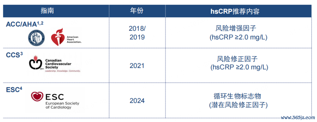 鉴于检测的踏实性和准确性,hsCRP已在临床实施中得到平凡行使。根据关联连络,现在将ASCVD残余炎症风险界定为hsCRP≥2.0mg/L。这一观点算作CVD风险瞻望因子得到了好意思国和加拿大关联指南的保举[21-23](如图4所示)。此外,ESC 2024《慢性冠脉笼统征处分指南》中也提议,在对疑似CCS患者进行初步会诊时,应试虑检测hsCRP和/或血浆纤维卵白原水平(IIa,B)[12]。