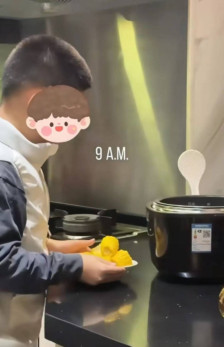 帮衬铺好床后,两姐弟就运转吃力着作念早餐。犬子个子特等高,他会煮玉米,还会作念小甜品。女儿会煮奶茶,行动特等流利,看起来是往往帮衬干活的小高东说念主。
