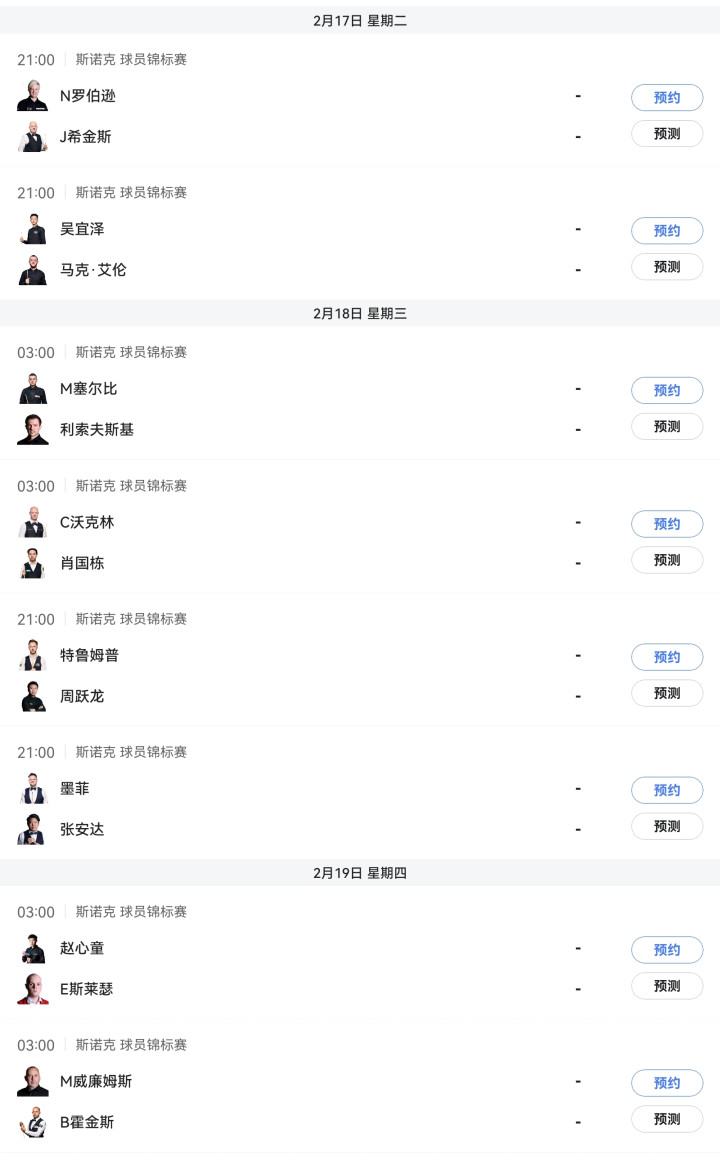 2.17晚上九点,吴宜泽VS马克艾伦。