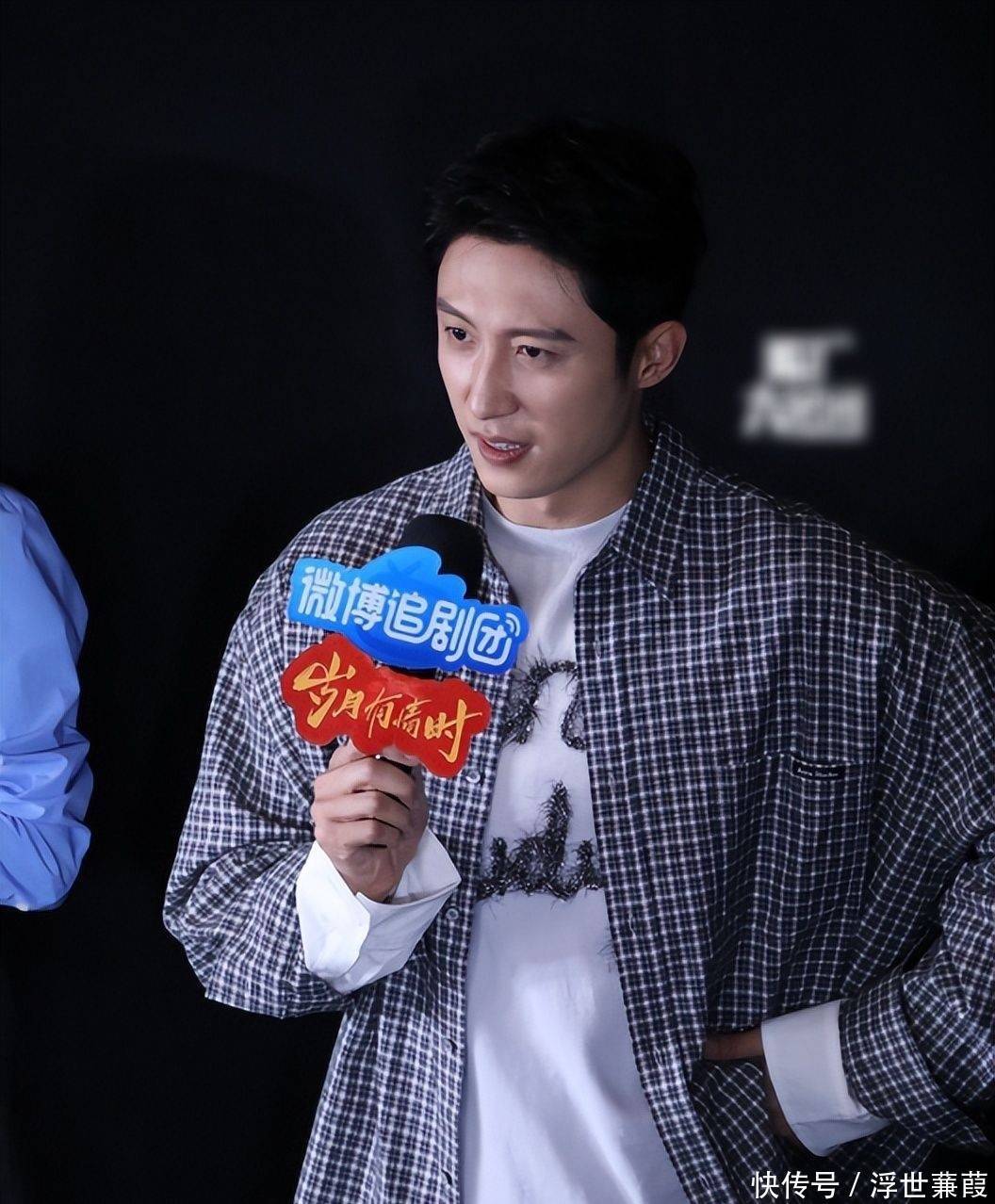 他身穿因循格纹衬衫内搭纯白T恤,失业中透着挺括筋骨感,体态挺拔如松,嘴角微扬时若有若无的小酒窝更添亲和力,现象宽裕且富余感染力。