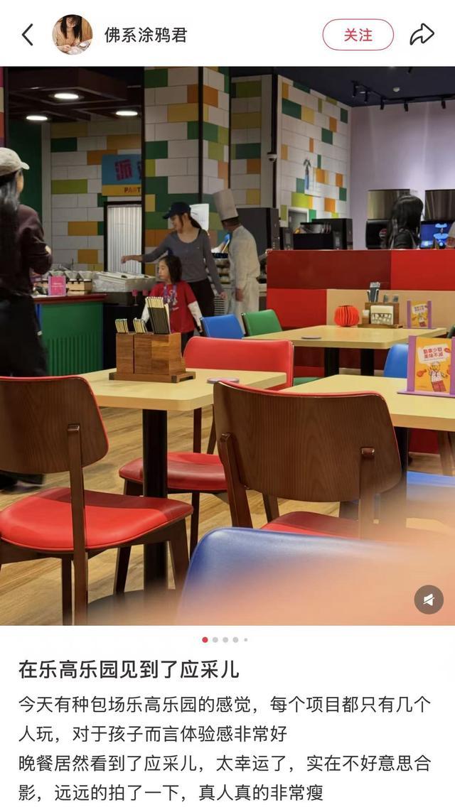 团结时期,应采儿带着将近6岁的小女儿HOHO,与一又友一同到上海乐高乐土玩。