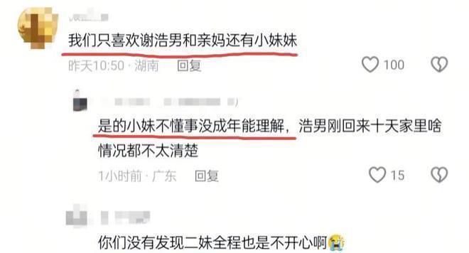 也有东说念主平直表态,当今只可爱浩男、谢妈以及小妹妹。天然只是网友表态,关联词听起来却很扎心。