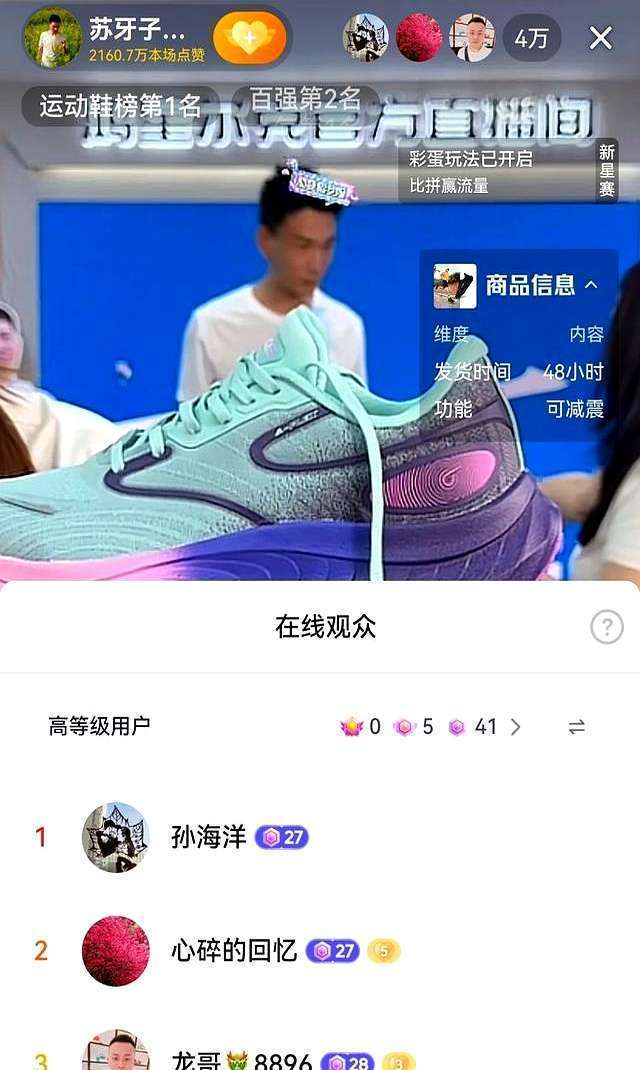你品你细品,不到半小时,苏伢子的直播间就成了平台领悟鞋榜的No.1,东说念主气亦然第一!半小时销售额冲突128万元!在带货总榜上也排到了第六名傍边。诚然和谢浩男的姆妈那些带货大佬比拟,苏伢子哥哥的直播数据可能还差一些,毕竟东说念主家许健华直播的期间,开场俄顷就十几万东说念主在线了。