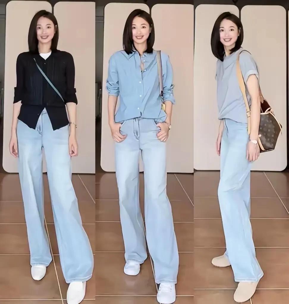 接着我们再来看底下这3套穿衣打扮,用玄色的真挚开衫搭配上牛仔裤,这手艺聘请白色的热乎鞋来穿搭就相比颜面,用衬衫搭配上牛仔裤聘请小白鞋来搭配就会偏失业风。