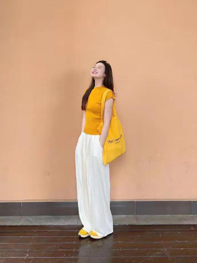 淌若在这个夏天照实思要那种相比亮眼的穿着神采,你还可以聘请黄色的真挚上衣搭配上白色的阔腿裤