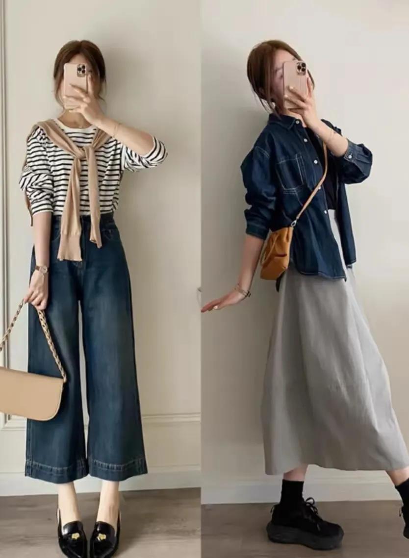 底下这2套穿搭就很可以,一件黑白条纹的上衣搭配上牛仔阔腿裤,脚踩一对皮质的浅口单鞋,八成是用一件天生就领有失业和先锋元素的牛仔衬衫搭配上灰色的半身裙,这么的穿衣打扮照实很顺应咫尺的季节。