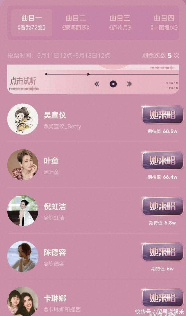 选曲定存一火。《看我72变》需要高强度编舞,对叶童组是致命训练;《四面楚歌》中国风野心可能设立王珞丹的“巩俐式”舞台;而《庐州月》若加入越剧元素,李晟有望复刻陈丽君传闻 。