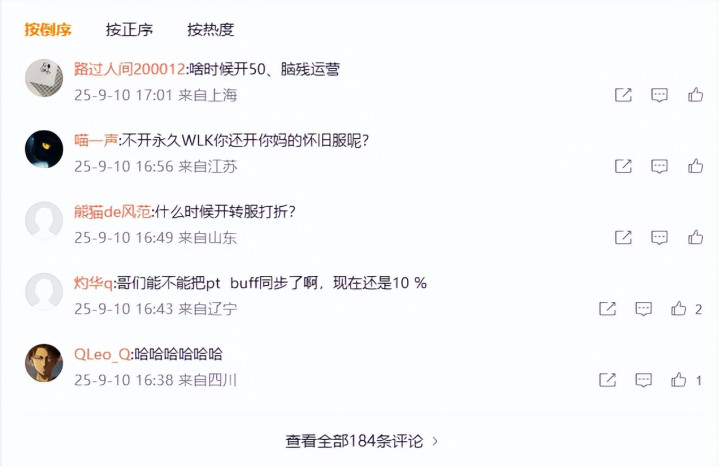 减轻公告指摘区好多玩家条件官方合服,致使有些玩家很卑微地问转服什么时候不错打折。其实咫尺魔兽寰宇WLK怀旧服鬼服的情况越来越严重了,此时合服才是最好采取。致使有些服的东谈主根柢就打不起本,这个时候总弗成让这些玩家私费进行转服吧?因为好多时候,由于东谈主数较多,一些新玩家会被保举到东谈主气较差的服去,从而导致了如今的鬼服,也有一些服因为玩家流失过快变成了鬼服,因此合服很遑急。