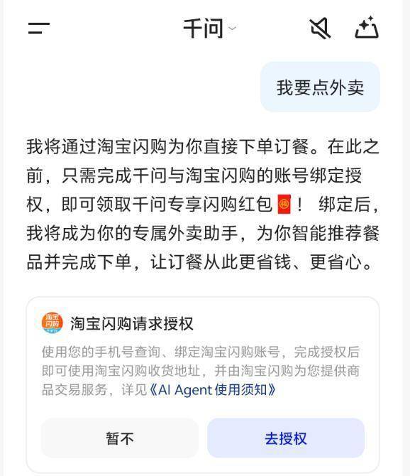 不同于以往需要去插件商场手动“装配”,千问对淘宝闪购/外卖能力的调用是意图驱动的。