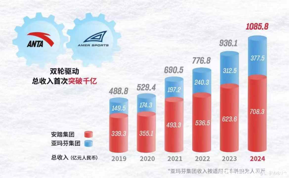 安踏集团 + 亚玛芬集团总收入变化趋势(2019-2024)
