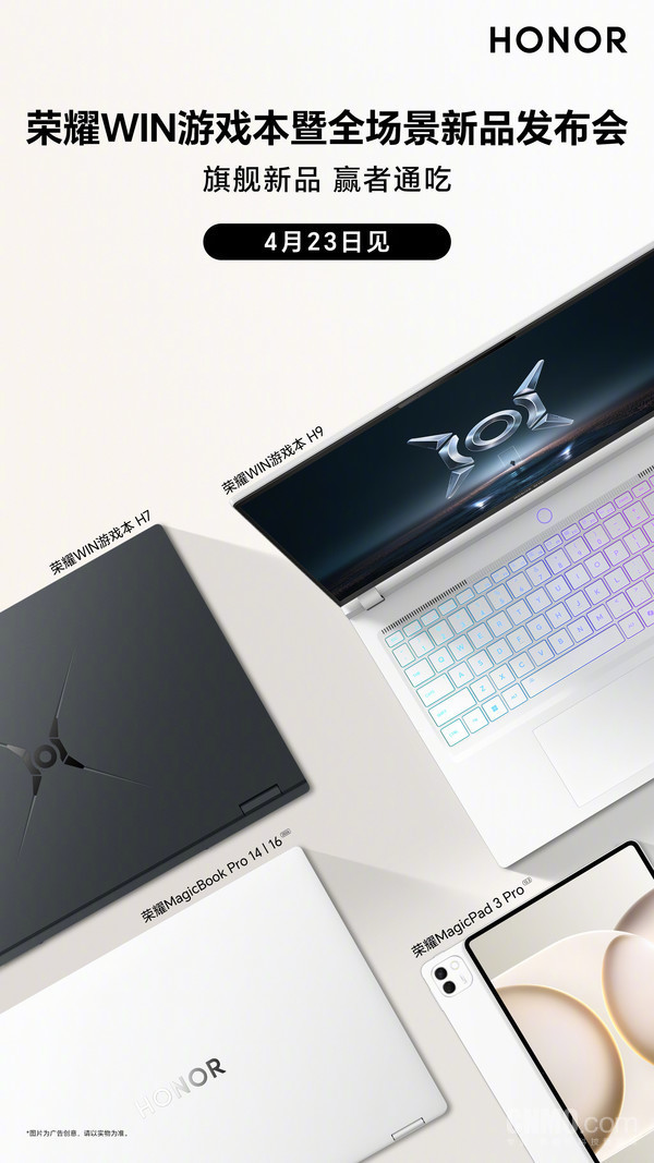 【CNMO科技音书】4月22日,数码博主“林林-一枝小白兔”汇总了在荣耀WIN游戏本暨全场景新品发布会上,将推出的札记本电脑、配件及音频诱骗等新品。 荣耀WIN游戏本 札记本电脑方面,荣耀将推出WIN游戏本H9、WIN游戏本H7、MagicBook Pro 16 2026款、MagicBook Pro 14 2026款、荣耀札记本X16 Plus 2026款和荣耀札记本X14 Plus 2026款。 据CNMO了解,荣耀WIN游戏本是三角洲作为炊火行状联赛指定本,领有270W满血性能刁钻输出和