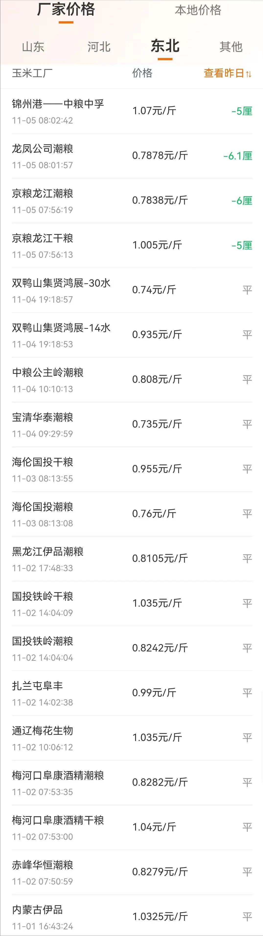 在玉米供应方面,东北地区,跟着秋粮收割渐入尾声,最近两日,受冷空气的影响,气温多数跌破0℃,下层玉米售粮压力减轻,农户惜售意愿转强!重复,腹地中储粮直属库入市增多,潮粮卖压舒缓,而多方主体建库热度转强,东北玉米基本面有所改善!在华北以及黄淮地区,由于腹地下层余粮逐渐减少,农户售粮意愿不高,渠谈入库老本加多,认卖意愿舒缓,重复,需求复旧转强,市集逢低建库阵势增多,市集基本面改善,然而,受产区粮源价差扩大,东北粮源外调增多,腹地玉米仍靠近一定的压力!