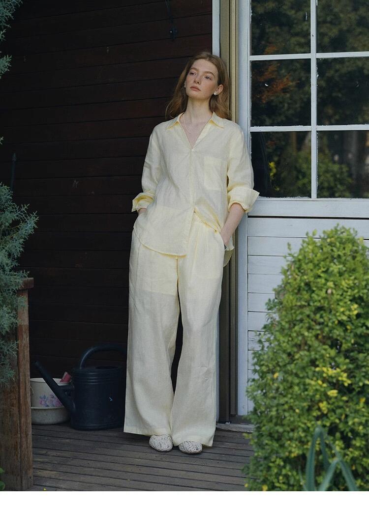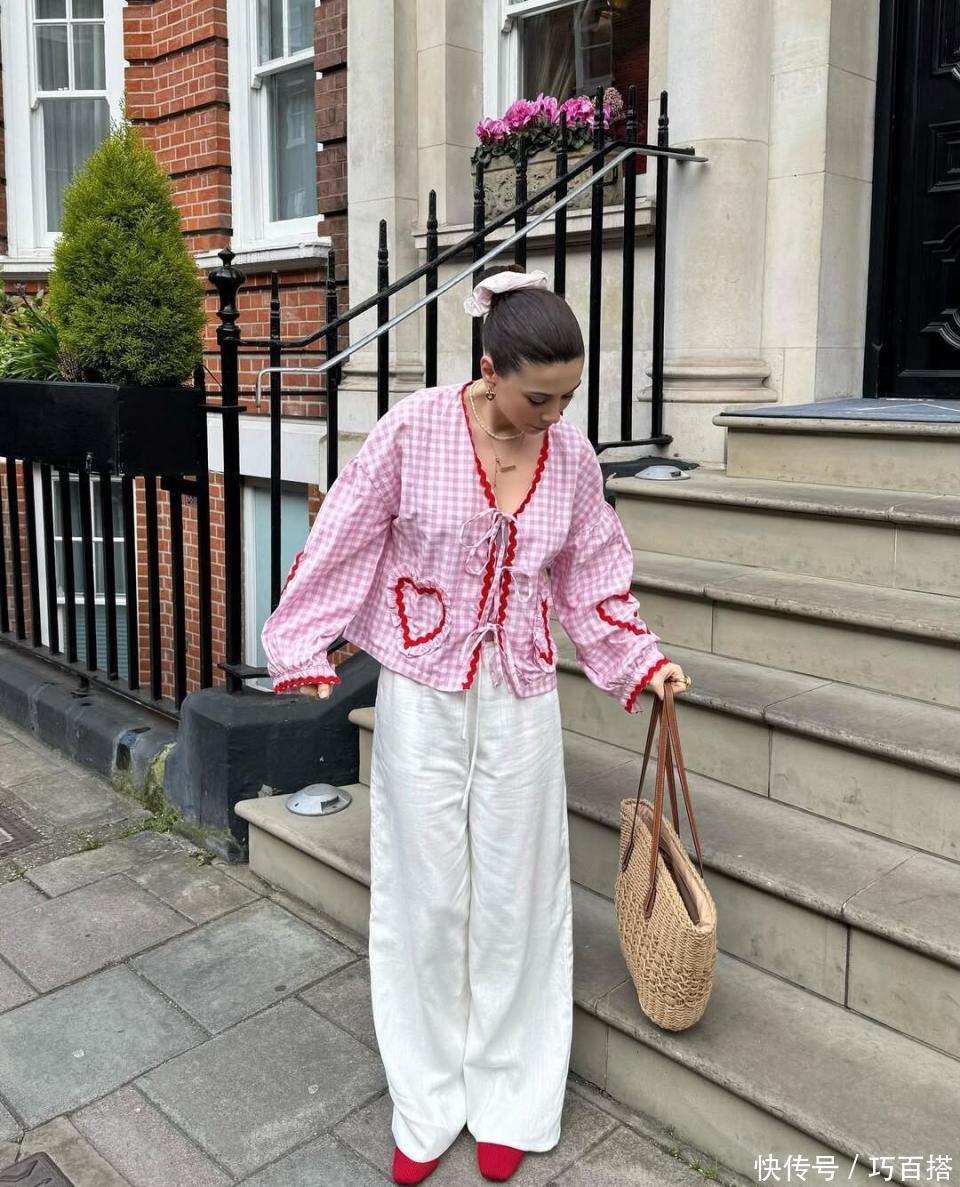 淡粉色上衣搭配纯白色长裤,苟简证据,既有青娥感又不会过于甜腻,色系氛围相互中庸、相互确立。
