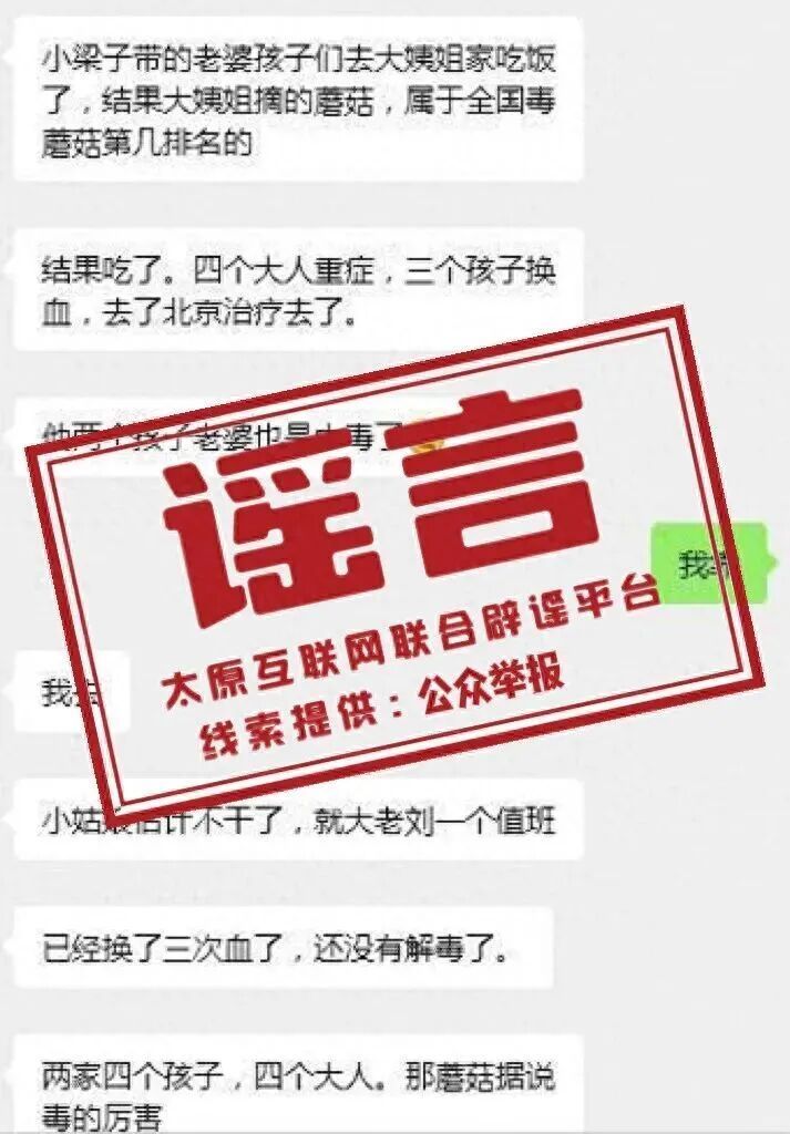 近日,有网民在应付平台发布山西太原“一家八口食用自采野生蘑菇中毒,四个大东说念主重症、三个孩子换血”的聊天纪录,激勉部分公众暄和。经查,该信息为作假言论。骨子情况是,近期确有因采食野生蘑菇中毒就诊案例,但均为轻症,未发生重症或归天事件。