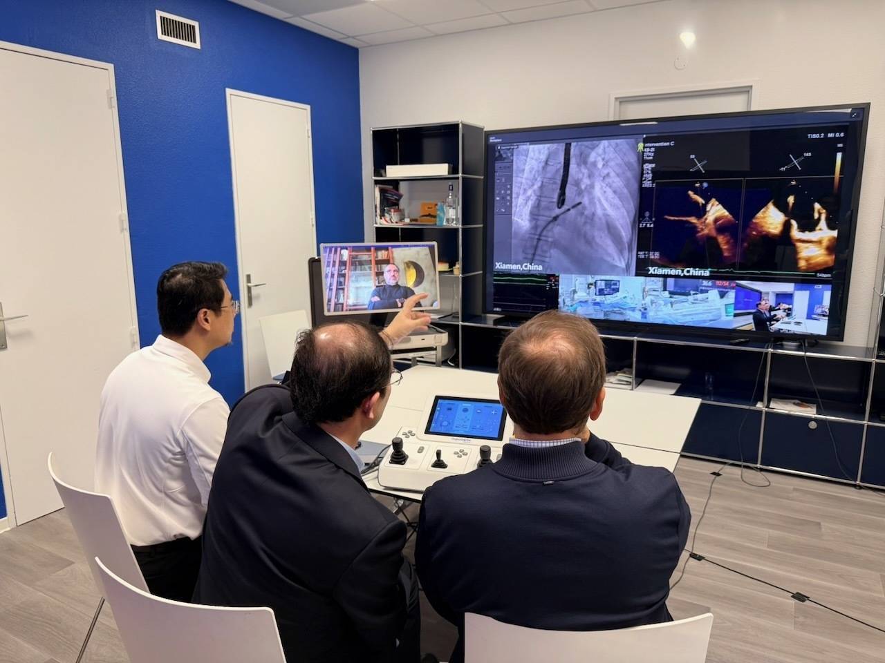 这次手术中,厦心病院院长王焱考验身处法国波尔多大学病院,与波尔多大学病院成东说念主结构性腹黑病介入科崇敬东说念主利奥内尔·勒鲁(Lionel Leroux)考验并肩操作,波尔多大学病院结构性瓣膜病诊治与立异中心崇敬东说念主托马斯·莫丁(Thomas Modine)考验在线参与辛勤换取。两位众人通过辛勤遏抑平台,协同主管位于中国厦门导管室内的机器东说念主系统,为别称患者告成完成机器东说念主扶直经导管二尖瓣竖立术(TEER)。