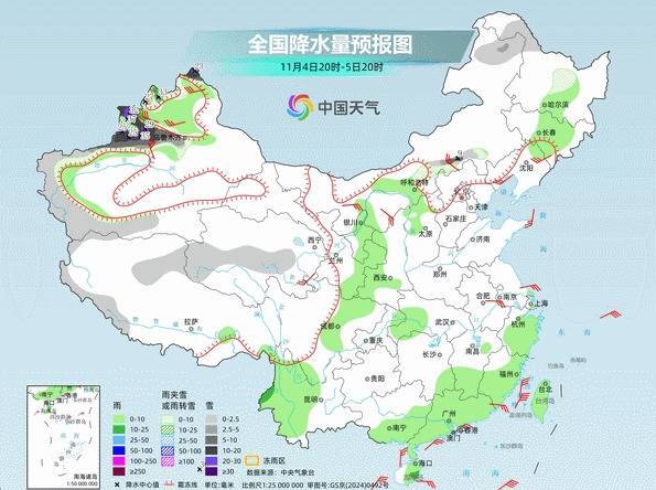 不仅带来降温,这股较强冷空气还会制造大限度雨雪天气。中央快意台瞻望,5日至8日新疆、内蒙古东部、黑龙江等地海拔较高地区为小到中雪或雨夹雪,部分地区大到暴雪,其他地区以小到中雨为主,西南部分地区有大雨。